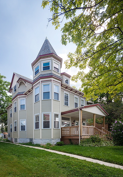 The exterior of the Chicago Heights Home, a three-story victorian style shared multi-family building.